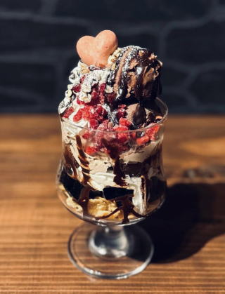 カットした自家製チョコレートケーキと自家製のコーヒーゼリーにチョコレートクリーム&濃厚チョコレートアイスで作る季節限定のパフェ。 ※ドリンクとセットで50円引き |